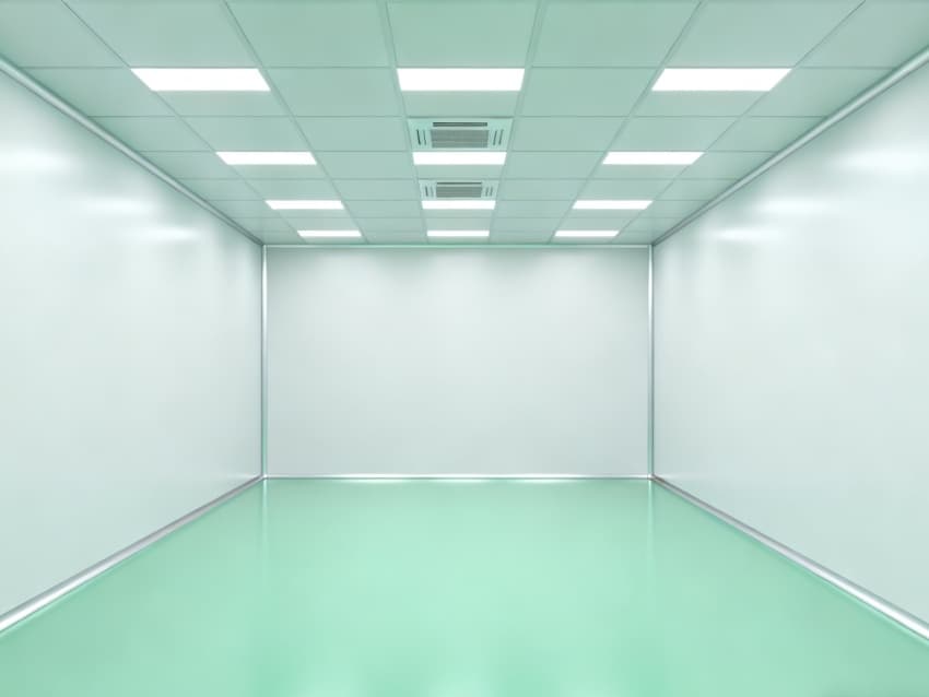 設(shè)計(jì)在環(huán)境防護(hù)上針對(duì)性突出:地面采用淺綠色防靜電環(huán)氧材質(zhì),表面電阻值控制在10^6-10^9Ω,有效規(guī)避靜電對(duì)電子零件的損傷;四周白色防塵墻壁經(jīng)啞光處理,減少光線反射干擾,配合頂部高效空氣過濾器(HEPA),可穩(wěn)定維持千級(jí)潔凈度,隔絕粉塵、微粒對(duì)精密組裝的影響。?