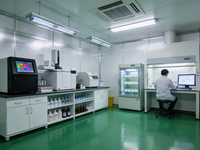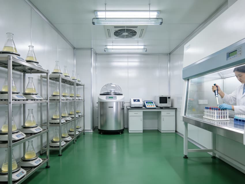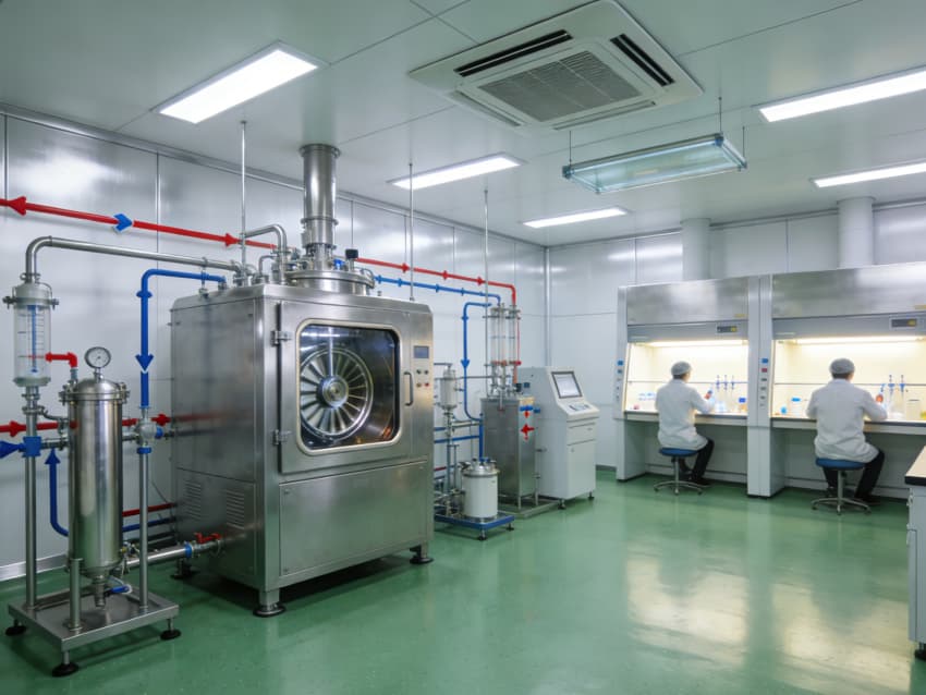 白色墻面采用食品級無菌抗菌涂層,采用無縫拼接與高精度找直工藝,陰陽角設計成R50圓弧倒角,徹底杜絕清潔死角,潔凈度穩定維持在Class 7級以上標準。廠房按功能科學劃分出細胞培養區、病毒載體構建區、純化區、質控區等核心區域,每個區域都配有獨立層流凈化和負壓隔離系統,細胞培養區還預留了恒溫恒濕精準調控接口(溫濕度誤差±0.2℃、±2%RH),各區域均設置無菌物料傳遞通道,全方位守護生物安全與生產合規,為CGT研發生產筑牢堅實基礎。