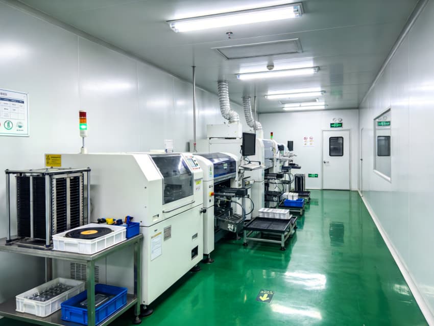 - 核心生產區(qū)針對 SMT 貼片、晶圓劃片等工位,優(yōu)化了設備布局與動線設計,防靜電工作臺搭配伸縮式通風除塵管道,有效收集工藝粉塵并保障設備散熱;特種工藝區(qū)為真空爐、薄膜沉積等重型設備做了地面承重加固與專業(yè)管線預埋,適配高精密設備的安裝與運行需求。