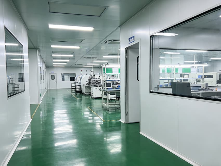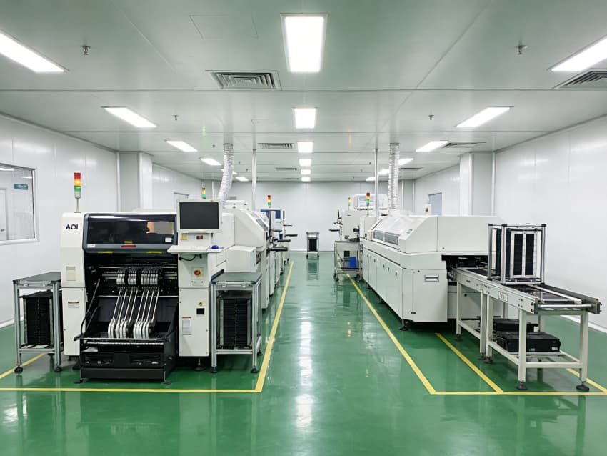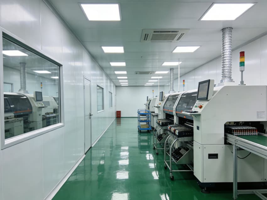 SMT 核心生產區:針對高速貼片機、回流焊等設備做了地面承重加固與管線預埋,配置伸縮式通風除塵管道,及時收集焊煙與粉塵;防靜電工作臺搭配 LED 工位燈,保障貼片、焊接的精度與效率。