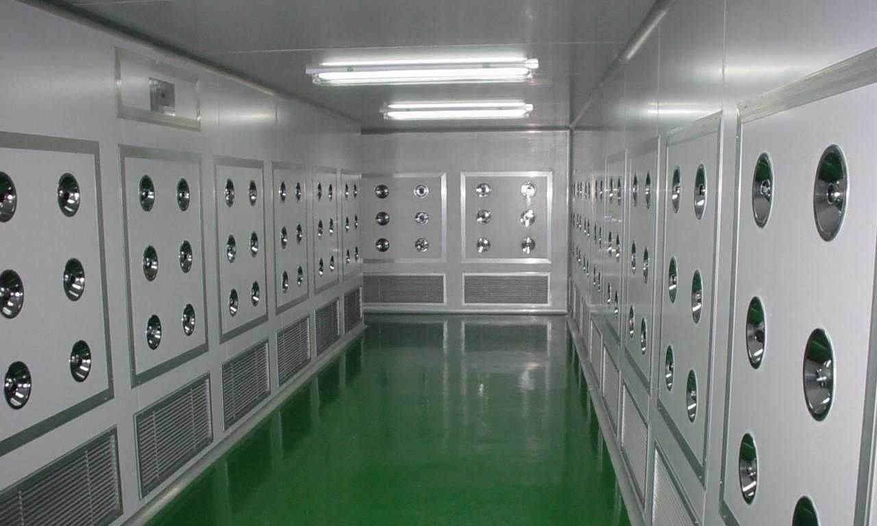 風淋室是凈化工程中不可缺少的一部分,是進入潔凈室所必需的通道,可以減少進出潔凈室所帶來的污染問題,是一種通用性較強的局部凈化設備,安裝于潔凈室與非潔凈室之間。風淋室應用于微電子、光電、半導體、醫藥、食品、化工、航空、汽車、印刷、實驗室等各個無塵車間與非無塵車間、階梯潔凈度車間中,用于從低潔凈度房間進入高潔凈度房間過程中除去人各部位大于0.3微米粉塵顆粒,以免進入潔凈房后帶去污染。同時也起到氣流緩沖作用,因為在開門的過程中,附帶有空氣的流動,風淋室很好的把氣流流動停于風淋室內部,很好的避免了空氣流動所帶來的空氣污染。