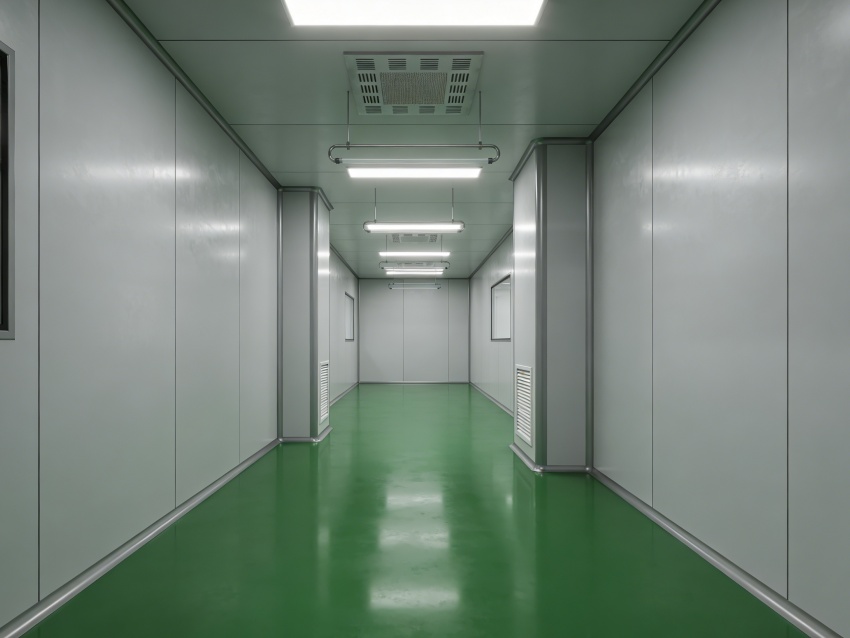 內(nèi)部生產(chǎn)車間均以綠色抗菌潔凈地坪搭配灰色工業(yè)級無縫墻面,形成鮮明且適配行業(yè)的視覺基調(diào)。綠色地面選用食品級抗菌環(huán)氧材質(zhì),具備強(qiáng)耐磨、抗酸堿腐蝕及易消殺特性,可耐受發(fā)酵液、清潔劑等殘留清理,同時助力緩解操作人員視覺疲勞;灰色墻面采用抗菌涂層無縫拼接,搭配圓弧墻角設(shè)計,徹底消除清潔死角,減少微生物附著滋生。