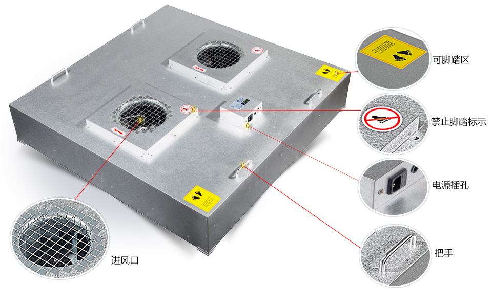 目前,各種FFU最多由以下幾部分組成(按從上到下、從內到外的順序),視不同廠家組成部分可能有所減少。