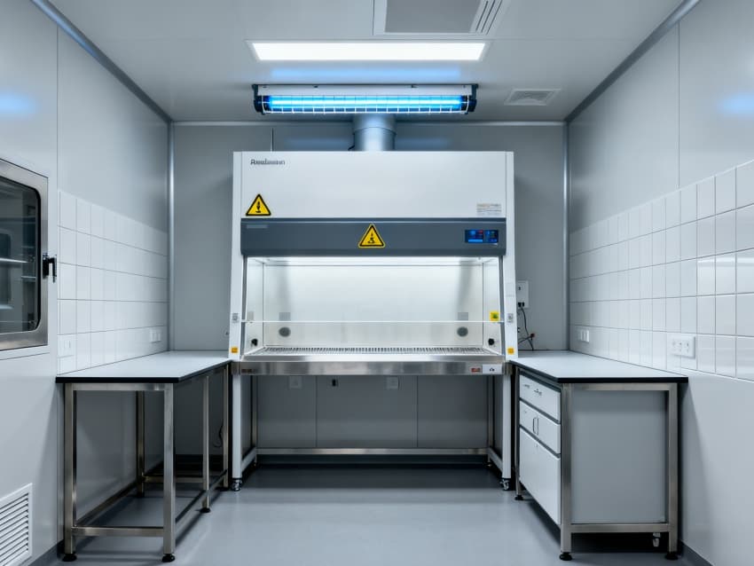 圍護結構選用304不銹鋼抗菌墻板與無縫PVC地面,轉角圓弧處理無衛生死角,配套紫外消毒系統與恒溫恒濕控制(22±1℃,50±5%RH),全面滿足微生物研究的無菌環境要求。